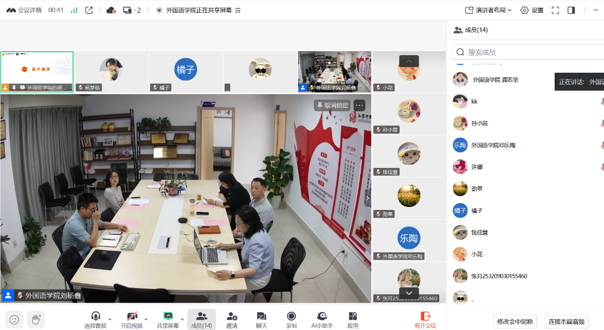 5月14日,在学院会议室,面向全省新生的入学教育活动线上线下同步开展。入学教育由学院党总支书记杨远主持。院长孙雁冰首先发表讲话,向新生们介绍了学院的基本情况,并对同学们提出了期望和建议。应用语言系副主任蒋霞、汉语国际教育专业李蒙博士分别针对两个专业进行了细致讲解,帮助新生更好地理解所学专业的核心内容。刘杨鑫就开放学生活动安排进行了说明,为新生提供了实用的指导和建议。