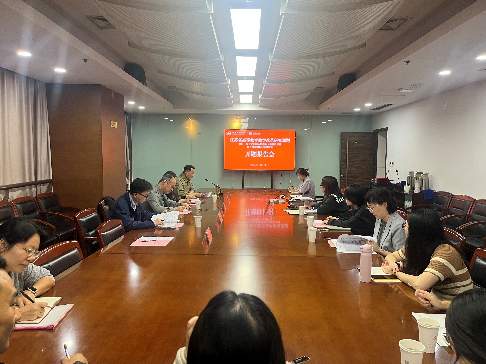 本次报告会评审专家组由校外知名专家、校内学术委员会委员、教务部门负责人、相关学科专业带头人、高水平教授等构成。孙雁冰从课题的研究目标、研究内容、研究重点、研究方案、研究创新及预期成果等方面进行汇报。专家组认真阅读了相关材料,对课题组开题报告内容和前期准备工作给予了充分肯定,并立足高等教育改革前沿,在完善课题设计架构、提高可操作性等方面提出了许多建设性意见,使课题组明确了研究方向,为研究任务的高质量完成奠定了坚实基础。