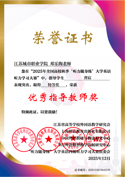 本次“听力随身练”大赛是我校深化“以赛促教、以赛促学”教学改革的重要实践,赛事成绩不仅体现了学生听力能力的显著提升,更验证了外国语学院“AI+传统教学”融合模式的有效性——通过平台数据精准定位学生薄弱环节,结合教师针对性辅导,实现“个性化提升、高效化备考”,为我校后续大学英语四级听力教学与学生能力培养提供了宝贵的实践经验。