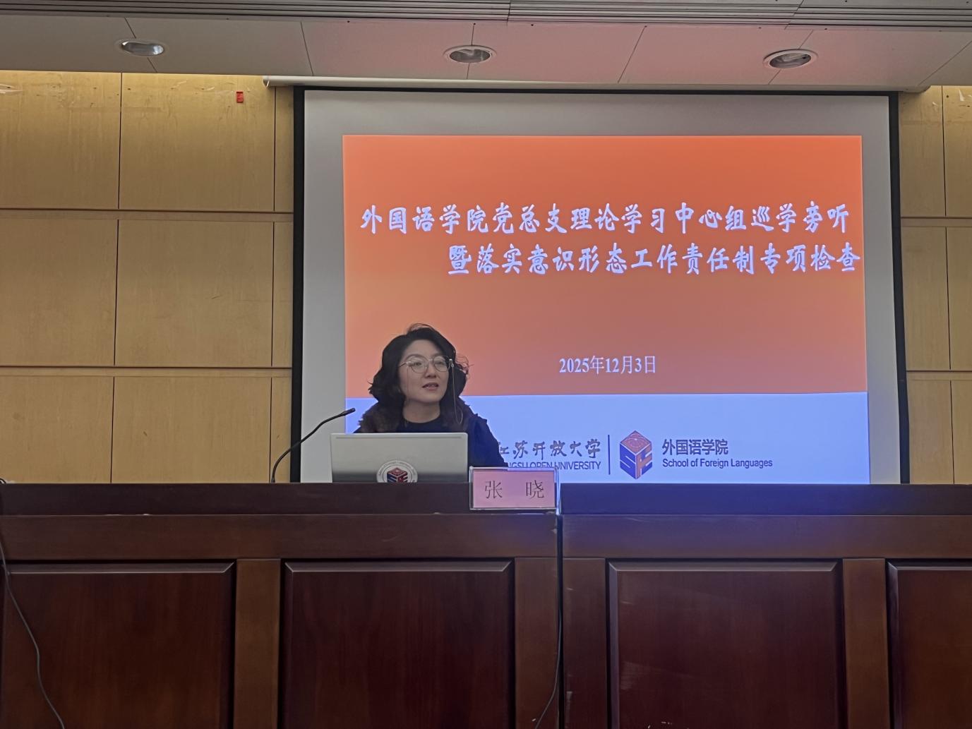 副校长张晓对外国语学院党总支开展理论学习中心组巡学旁听和落实意识形态工作责任制专项检查